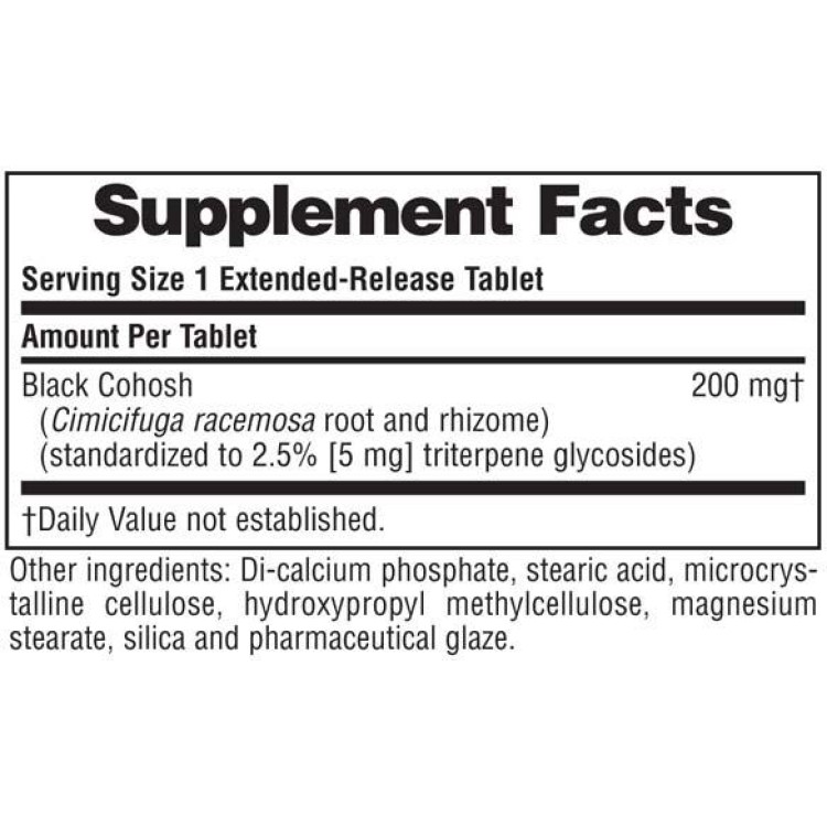 Κάθε ταμπλέτα παρατεταμένης αποδέσμευσης περιέχει 200 mg τιτλοδοτημένο εκχύλισμα Black Cohosh (Cimicifuga racemosa), περιεκτικότητας 2,5% (5 mg), κατ’ ελάχιστον, σε triterpene glycosides.