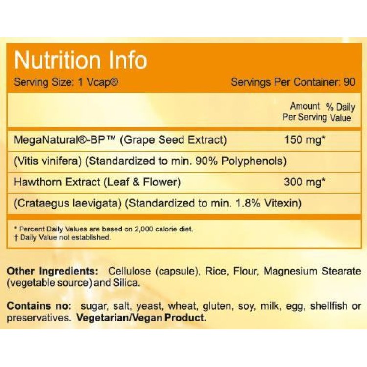 Το NOW® BLOOD PRESSURE HEALTH είναι ένα διατροφικό συμπλήρωμα που περιέχει το μοναδικό εκχύλισμα Mega Natural® - BP σπόρου σταφυλιού, καθώς και το εκχύλισμα Hawthorn, δημιουργώντας έτσι έναν δυναμικό συνδυασμό για την διατήρηση της υγιούς πίεσης του αίματος.
