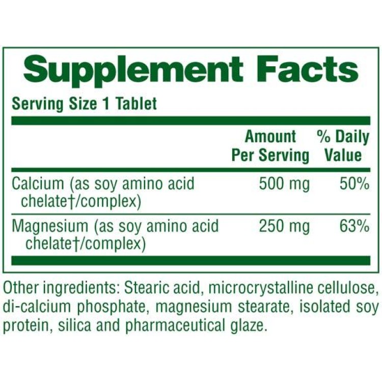 Κάθε ταμπλέτα περιέχει 500 mg ασβεστίου και 250 mg μαγνησίου. Βιοτρονική μέθοδος χηλικοποίησης για μέγιστη απορρόφηση.