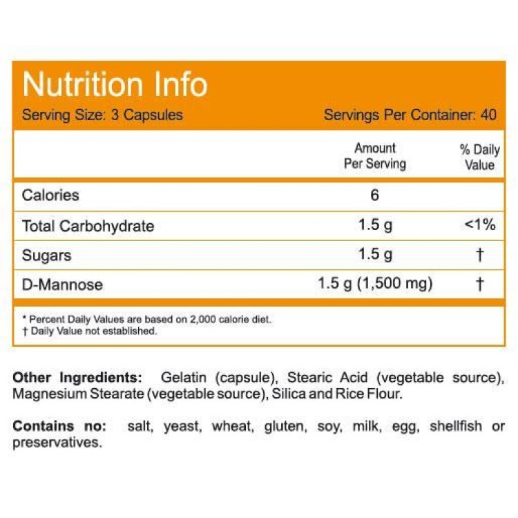 Η D-Μαννόζη είναι μία απλή (six-carbon) ζάχαρη που αποτρέπει την πρόκληση λοιμώξεων της ουροδόχου κύστης ή των νεφρών. Αυτή η φυσική ζάχαρη παράγεται από το ανθρώπινο σώμα, αλλά είναι ανεπαρκής για την καταπολέμηση του επιβλαβούς βακτηρίου E. Coli, που είναι η βασική αιτία πίσω από το 90% των λοιμώξεων του ουροποιητικού.