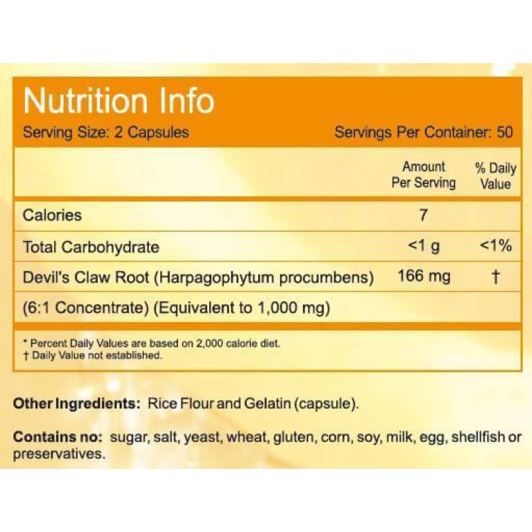 Το εκχύλισμα NOW® Devils Claw περιέχει μια σειρά φυσικών ευεργετικών ενώσεων συμπεριλαμβανομένων φυτοστερόλων, φλαβονοειδών και φαινολικών οξέων. Χρησιμοποιείται για τις αντιφλεγμονώδεις ιδιότητές του και είναι μια σημαντική επιλογή για όσους αντιμετωπίζουν πόνο και φλεγμονή.