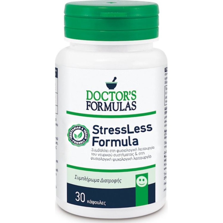 Το Doctor's Formulas Stress Less Formula (30caps) είναι ένα συμπλήρωμα διατροφής που διευκολύνει τον ύπνο και την χαλάρωση. Το Doctor's Formulas Stress Less Formula: