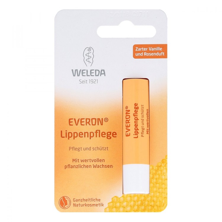 Η περιποίηση χειλιών Everon® περιέχει φυσικά, ήπια συστατικά, όπως βιολογικό έλαιο τζοτζόμπα, πολύτιμο μελισσοκέρι και βιολογικό βούτυρο καριτέ για θρέψη και προστασία στα ξηρά κι ευαίσθητα χείλη. Η προσθήκη μικρής ποσότητας μλισσοκεριού δημιουργεί ένα φράγμα προστασίας από τις επιρροές του περιβάλλοντος και οι ήπιες νότες βανίλιας και τα αιθέρια έλαια δημιουργούν ένα απαλό, αρωματικό βάλσαμο που δε θα θέλετε να αποχωριστείτε.
