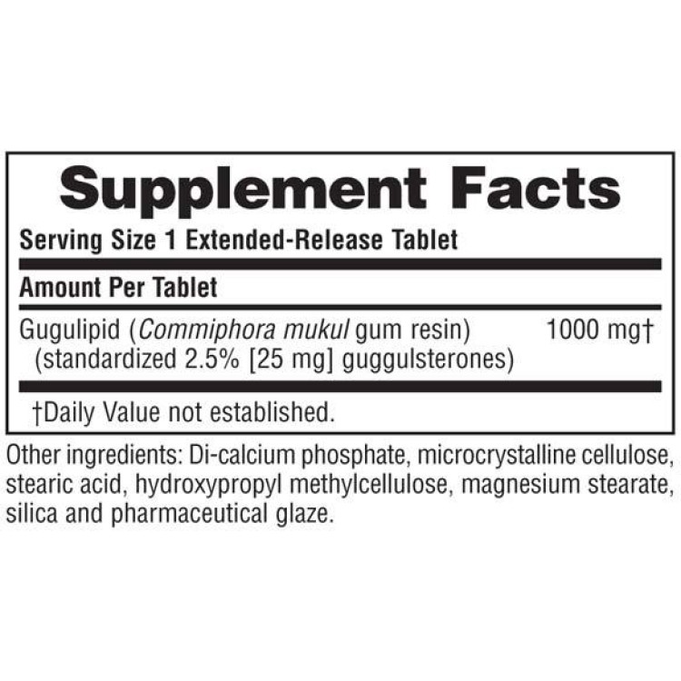 Κάθε ταμπλέτα παρατεταμένης αποδέσμευσης περιέχει 1000 mg Gugulipid (Commiphora mukul gum resin), περιεκτικότητας 2,5% (25 mg), κατ’ ελάχιστον, σε gugulsterones.
