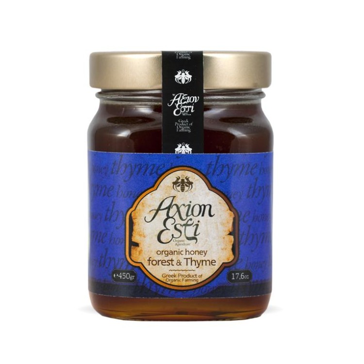 Το Βιολογικό μέλι δάσους και θυμάρι, συλλέγεται από τις μέλισσες στις αρχές του καλοκαιριού, τότε που το θυμάρι ανθοφορεί μαζί με άλλα αγριολούλουδα της εποχής. Η ανάμειξη αυτή δίνει στο μέλι το έντονο άρωμά του, το λαμπερό κίτρινο-πορτοκαλί του χρώμα με τις κοκκινωπές αποχρώσεις και τη μεστή και γλυκερή γεύση που το χαρακτηρίζει και μένει για πολύ στο στόμα. Το θυμαρίσιο μέλι είναι καταπραϋντικό και ευνοεί τον ύπνο. Είναι μοναδικό στο είδος του, δεν υπάρχει πουθενά σε ολόκληρο τον κόσμο ενώ η περιεκτικότητά του στο ένζυμο διαστάση, το κατατάσσει στις καλύτερες ποικιλίες μελιού παγκοσμίως.