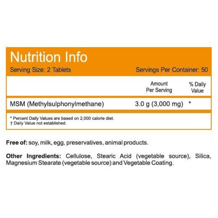 Το MSM (Methylsulphonylmethane) είναι μια φυσική μορφή θείου που βρίσκεται σε όλους τους ζωντανούς οργανισμούς. Ενώ το MSM είναι ένα φυσικό συστατικό σχεδόν όλων των φρέσκων φρούτων, λαχανικών, θαλασσινών και του κρέατος, οι μέθοδοι μεταποίησης των τροφίμων μειώνουν τα επίπεδα θείου, κάνοντας τη λήψη συμπληρωμάτων πιο σημαντική από ποτέ.