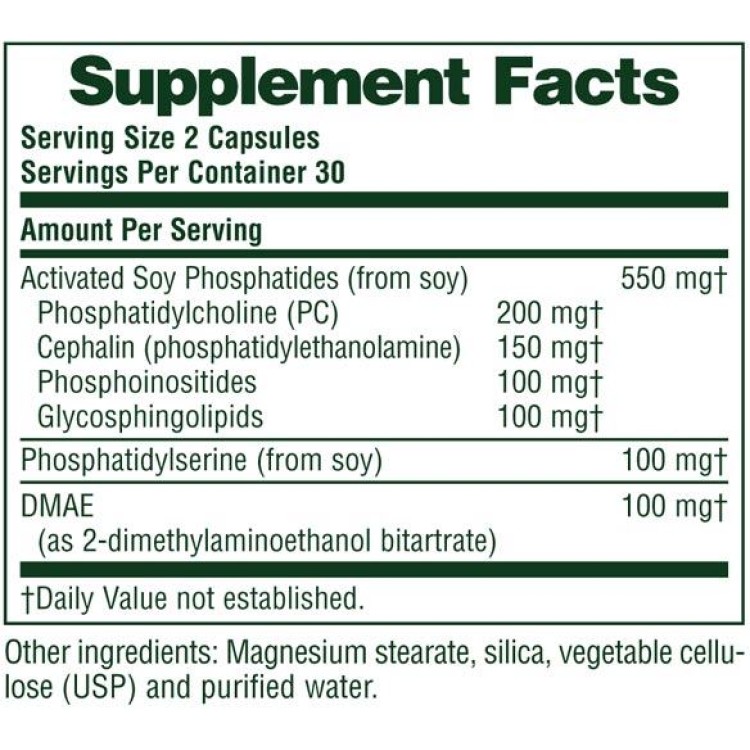 Ειδική φόρμουλα για τη βελτίωση των εγκεφαλικών λειτουργιών με φυσικές ουσίες που είναι συστατικά των νευρικών κυττάρων ή μετέχουν στην διαδικασία παραγωγής ορισμένων νευροδιαβιβαστών. Περιέχει (οι 2 ταμπλέτες): Phosphatidylserine (100 mg), DMAE (2-dimethylaminoethanol) (100 mg) και ενεργοποιημένα φωσφατίδια σόγιας (Phosphatidylcholine, Cephalin, Phosphoinositides, Glycosphingolipids) (550 mg).