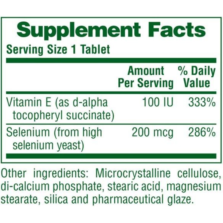 Κάθε ταμπλέτα περιέχει 200 mcg σεληνίου οργανικά ενωμένου με πρωτογενή μαγιά και 100 ΙU βιταμίνης Ε, για συνεργική αντιοξειδωτική δράση. Φυτική βάση από πρωτογενή μαγιά, χρώμιο και GTF (Glucose Tolerance Factor / Παράγων Ανοχής Γλυκόζης).