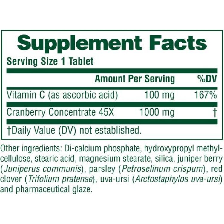 Συνεργικός συνδυασμός Cranberry (1000 mg) με βιταμίνη C (100 mg) και βότανα. Βαθμιαία αποδέσμευση συστατικών για καλύτερη απορρόφηση. Υποαλλεργικό προϊόν.