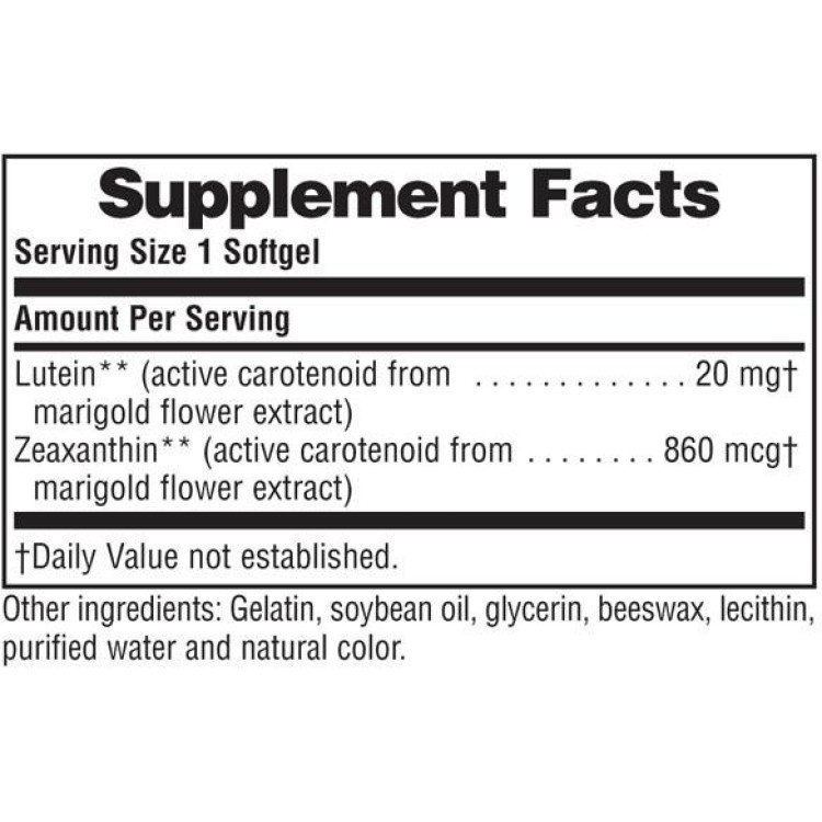 Κάθε μαλακή κάψουλα περιέχει 20 mg Λουτεΐνη και 860 mcg Ζεαξανθίνη.