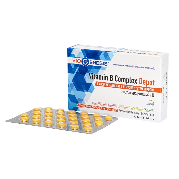 Το VioGenesis Vitamin B Complex Depot αποτελεί ένα σύμπλεγμα βιταμινών Β, φαρμακοτεχνικής μορφής δισκίων Depot. Η φαρμακοτεχνική αυτή μορφή, χάρη στη σύνθεσή της, επιτρέπει τη βραδεία αποδέσμευση των δραστικών ουσιών στον οργανισμό και τη σταδιακή απορρόφησή του.
