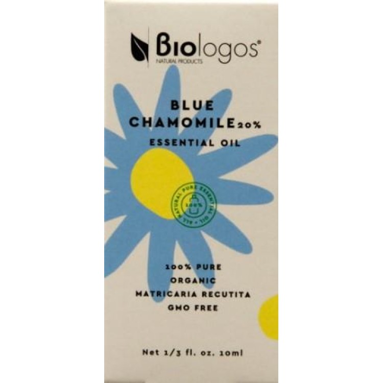 Αιθέριο έλαιο μπλέ χαμομήλι όπου εξάγεται από τις κορυφές των ανθών του φυτού, με απόσταξη ατμού περιέχει τις εξής ιδιότητες : ισχυρό αντιφλεγμονώδες, αντισηπτικό αντιαλλεργικό , αντικνησμικό, αντιφλογιστικό, χαλαρωτικό. Καταπραΰνει αλλεργίες και δερματικά προβλήματα (ερεθισμούς, εξανθήματα, ακμή, έκζεμα, ψωρίαση, έρπητα). Μειώνει μυϊκούς, ρευματικούς και αρθριτικούς πόνους. Αντιμετωπίζει νευρική ένταση, άγχος, πονοκέφαλο, ημικρανία, αϋπνία, οξυθυμία, κατάθλιψη. Ανανεώνει τα κύτταρα της επιδερμίδας, τονώνει τη λάμψη της και καθαρίζει τους πόρους. Φημισμένο ως μυστικό για χρυσαφιές ανταύγειες στα μαλλιά.