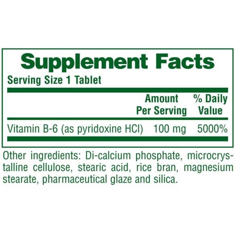 Κάθε ταμπλέτα περιέχει 100 mg βιταμίνης Β-6 (pyridoxine HCL) σε ενισχυμένη βάση πίτουρου ρυζιού. Υποαλλεργική. Άλλη ονομασία της βιταμίνης Β-6: Πυριδοξίνη.