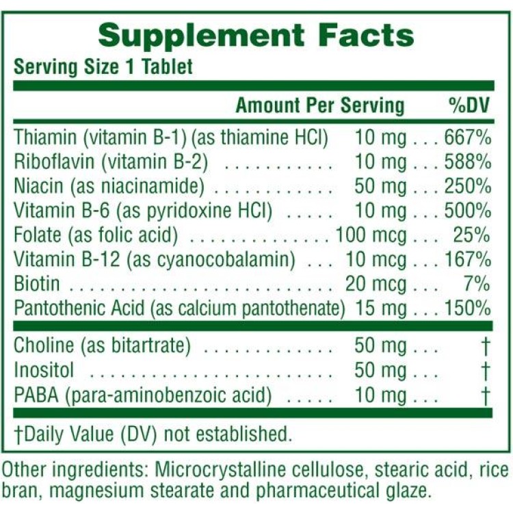 Υπoαλλεργική φόρμoυλα τoυ συμπλέγματoς Β, σε ενισχυμένη βάση πίτoυρoυ ρυζιoύ. Η περιεκτικότητα της φόρμoυλας στις περισσότερες βιταμίνες Β είναι 10 έως 50 mg.