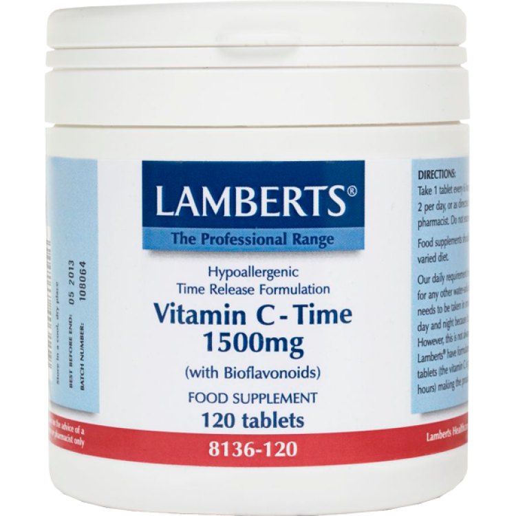 Οι ανάγκες του οργανισμού σε Βιταμίνη C είναι μεγαλύτερες από οποιαδήποτε άλλη υδατοδιαλυτή βιταμίνη. Ο ιδανικός τρόπος πρόσληψης της Βιταμίνης C είναι σε μικρές ποσότητες συνεχόμενα κατά τη διάρκεια όλου του εικοσιτετραώρου, καθώς λόγω. Κάτι τέτοιο όμως είναι πολύ δύσκολο. Για την επίλυση του προβλήματος αυτού η Lamberts δημιούργησε τις ταμπλέτες Βιταμίνης C Time Release.