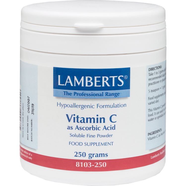 Η βιταμίνη C ανακαλύφθηκε για πρώτη φορά το 1932 (αναγνωρίστηκε σαν παράγοντας θεραπείας του σκορβούτου) και αποτέλεσε το αντικείμενο του πρώτου πειράματος ελεγχόμενης διατροφής στην ιστορία. Συμμετέχει σε τουλάχιστον 300 βιοχημικές αντιδράσεις. Αποτελεί υδατοδιαλυτή βιταμίνη, και καθώς δεν συντίθεται από τον οργανισμό, είναι απαραίτητη η πρόσληψη της μέσω διατροφικών πηγών. Οι βιταμίνες σε μορφή σκόνης είναι κατάλληλες γι’ αυτούς που βρίσκουν δύσκολη την κατάποση των ταμπλετών.