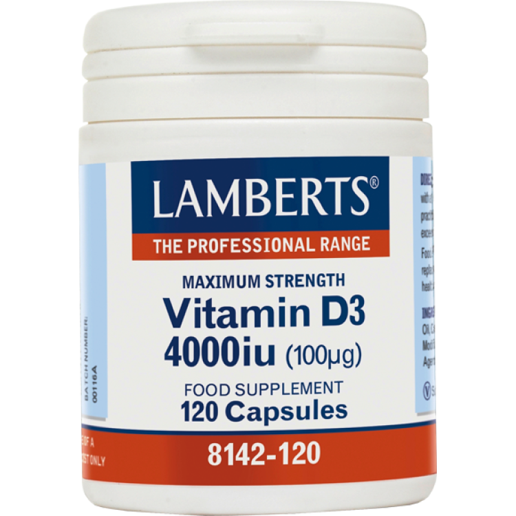 Η βιταμίνη D 4000iu της Lamberts παρέχει 100μg από αυτό το σημαντικό μικροθρεπτικό συστατικό στη προτιμώμενη μορφή D3 (χοληκαλσιφερόλη). Η περιεκτικότητα αυτή είναι η ολοένα και αυξανόμενα συνιστώμενη για τη διόρθωση των ανεπαρκειών της βιταμίνης D. Αυτές οι εύκολες στη κατάποση κάψουλες παρασκευάζονται εντός του ΗΒ σύμφωνα με τα φαρμακευτικά GMP στάνταρτ της Βρετανικής Φαρμακοποιίας.