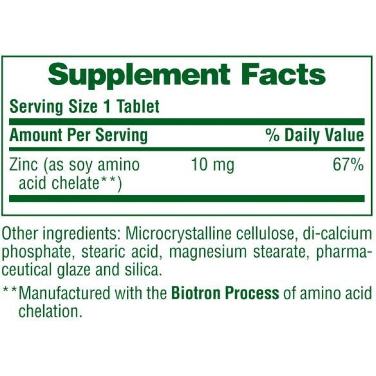 Κάθε ταμπλέτα περιέχει 10 mg στοιχειώδους χηλικού ψευδαργύρου. Βιοτρονική μέθοδος χηλικοποίησης για μέγιστη απορρόφηση.